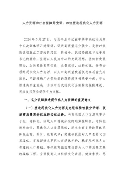 / 【七哥公文】2024年:人力资源和社会保障局党课:加快塑造现代化人力资源+更多免费公文+VX:QiGeGongWen2024
