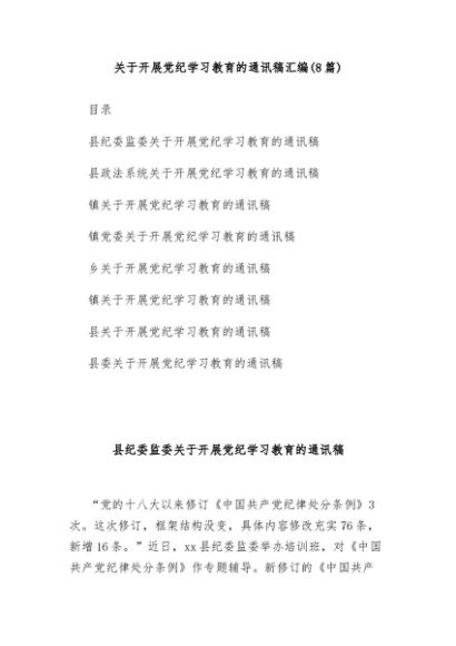 / 【七哥公文】2024年:(8篇)关于开展党纪学习教育的通讯稿汇编+更多免费公文+VX:QiGeGongWen2024