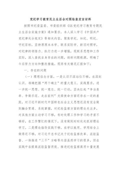 / 【七哥公文】2024年:党纪学习教育民主生活会对照检查发言材料+更多免费公文+VX:QiGeGongWen2024