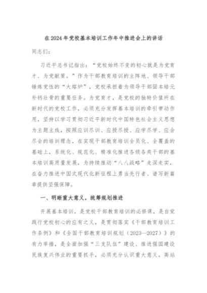 / 【七哥公文】2024年:在2024年党校基本培训工作年中推进会上的讲话+更多免费公文+VX:QiGeGongWen2024