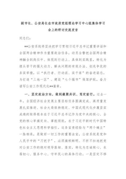 【七哥公文】2024年:副市长、公安局长在市政府党组理论学习中心组集体学习会上的研讨交流发言+更多免费公文+VX:QiGeGongWen2024