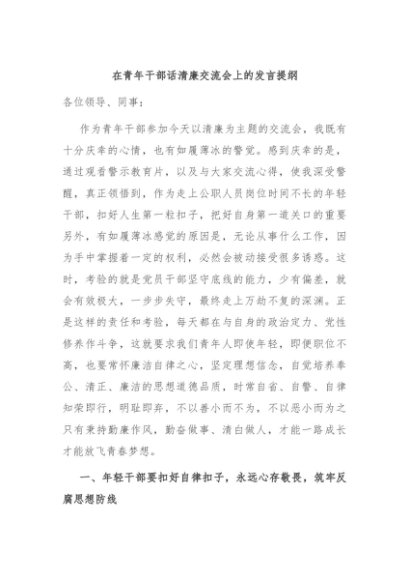 / 【七哥公文】2024年:在青年干部话清廉交流会上的发言提纲+更多免费公文+VX:QiGeGongWen2024