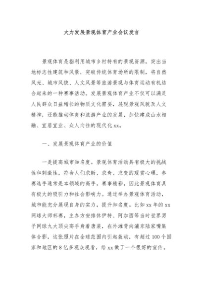 / 【七哥公文】2024年:大力发展景观体育产业会议发言+更多免费公文+VX:QiGeGongWen2024
