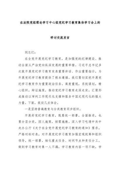 【七哥公文】2024年:在法院党组理论学习中心组党纪学习教育集体学习会上的研讨交流发言+更多免费公文+VX:QiGeGongWen2024