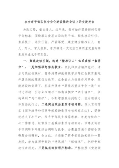 / 【七哥公文】2024年:在全市干部队伍专业化建设推进会议上的交流发言+更多免费公文+VX:QiGeGongWen2024