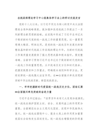 / 【七哥公文】2024年:在统战部理论学习中心组集体学习会上的研讨交流发言+更多免费公文+VX:QiGeGongWen2024