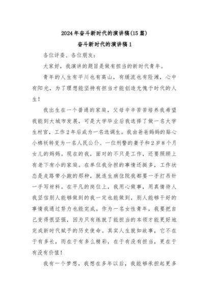 【七哥公文】2024年:(15篇)2024年奋斗新时代的演讲稿+更多免费公文+VX:QiGeGongWen2024