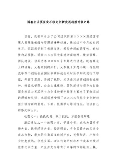 【七哥公文】2024年:国有企业要坚定不移走创新发展转型升级之路+更多免费公文+VX:QiGeGongWen2024
