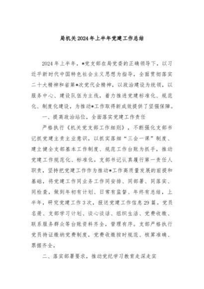 / 【七哥公文】2024年:局机关2024年上半年党建工作总结+更多免费公文+VX:QiGeGongWen2024