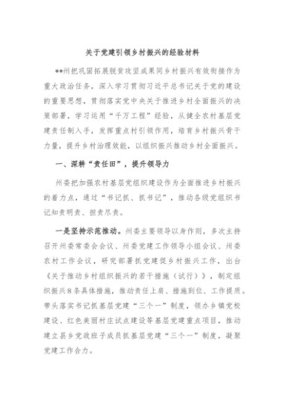 / 【七哥公文】2024年:关于党建引领乡村振兴的经验材料+更多免费公文+VX:QiGeGongWen2024