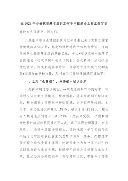 【七哥公文】2024年:在2024年全省党校基本培训工作年中推进会上的汇报发言+更多免费公文+VX:QiGeGongWen2024