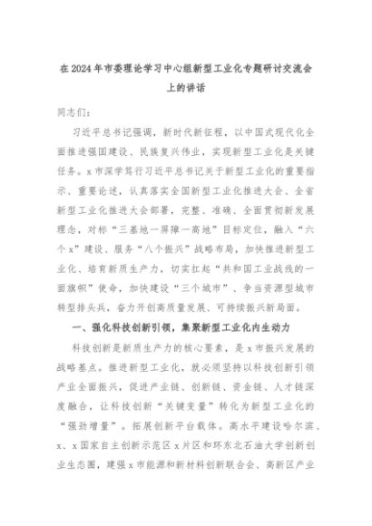 【七哥公文】2024年:在2024年市委理论学习中心组新型工业化专题研讨交流会上的讲话+更多免费公文+VX:QiGeGongWen2024