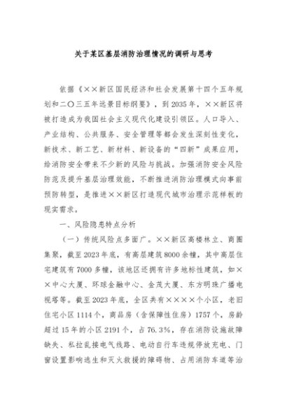 / 【七哥公文】2024年:关于某区基层消防治理情况的调研与思考+更多免费公文+VX:QiGeGongWen2024