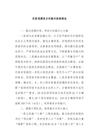 / 【七哥公文】2024年:区抓党建促乡村振兴经验做法+更多免费公文+VX:QiGeGongWen2024