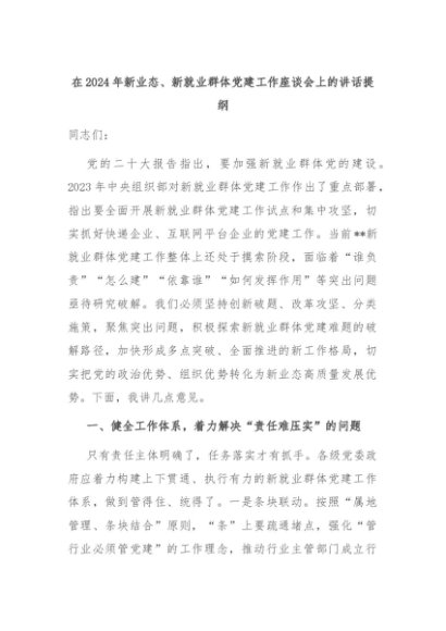 【七哥公文】2024年:在2024年新业态、新就业群体党建工作座谈会上的讲话提纲+更多免费公文+VX:QiGeGongWen2024