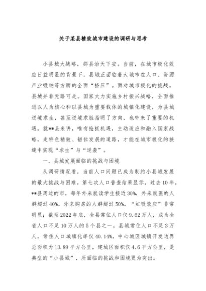 / 【七哥公文】2024年:关于某县精致城市建设的调研与思考+更多免费公文+VX:QiGeGongWen2024