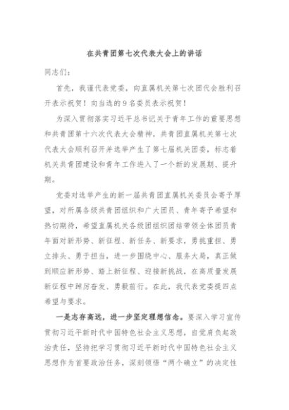 / 【七哥公文】2024年:在共青团第七次代表大会上的讲话+更多免费公文+VX:QiGeGongWen2024