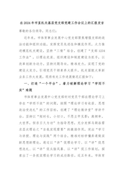【七哥公文】2024年:在2024年市直机关基层党支部党建工作会议上的汇报发言+更多免费公文+VX:QiGeGongWen2024