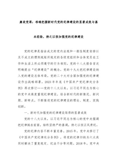 【七哥公文】2024年:廉政党课:准确把握新时代党的纪律建设的显著成效与基本经验,持之以恒加强党的纪律建设+更多免费公文+VX:QiGeGongWen2024