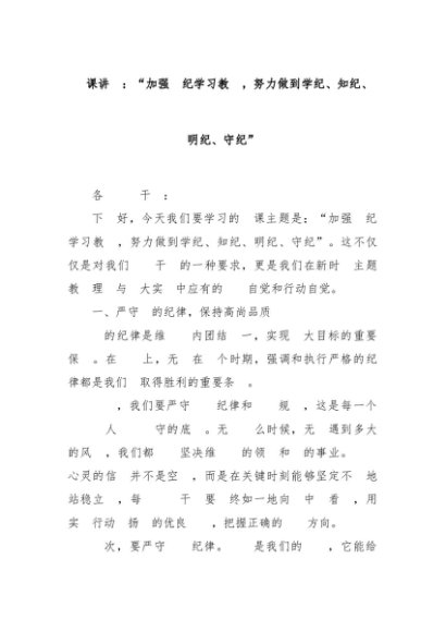 【七哥公文】2024年:党课讲稿:“加强党纪学习教育,努力做到学纪、知纪、明纪、守纪”+更多免费公文+VX:QiGeGongWen2024