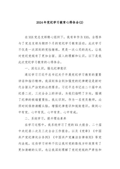 【七哥公文】2024年:2024年党纪学习教育心得体会(2)+更多免费公文+VX:QiGeGongWen2024