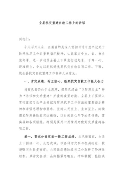 / 【七哥公文】2024年:全县抗灾重建自救工作上的讲话+更多免费公文+VX:QiGeGongWen2024