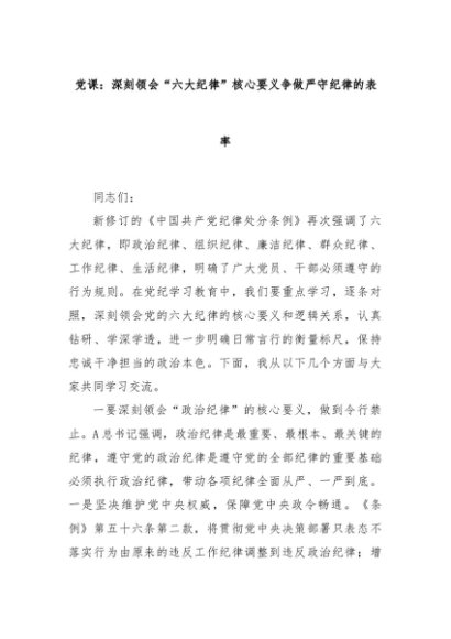 【七哥公文】2024年:党课:深刻领会“六大纪律”核心要义争做严守纪律的表率+更多免费公文+VX:QiGeGongWen2024
