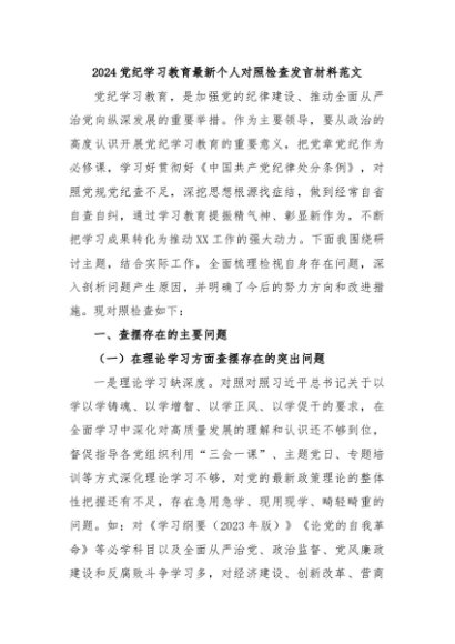 / 【七哥公文】2024年:2024党纪学习教育最新个人对照检查发言材料范文+更多免费公文+VX:QiGeGongWen2024