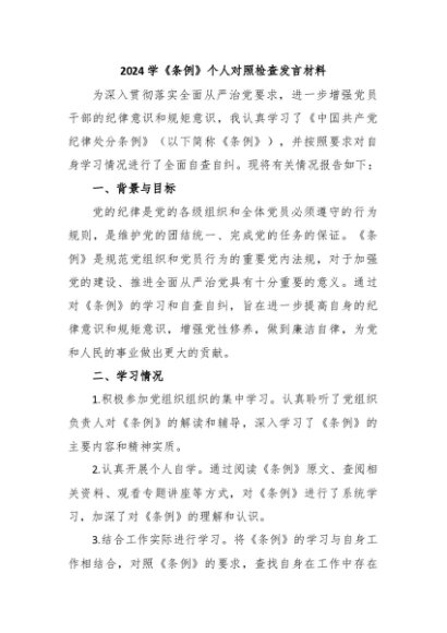 / 【七哥公文】2024年:2024学《条例》个人对照检查发言材料+更多免费公文+VX:QiGeGongWen2024