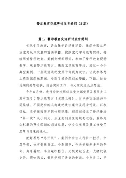 【七哥公文】2024年:(2篇)警示教育交流研讨发言提纲+更多免费公文+VX:QiGeGongWen2024
