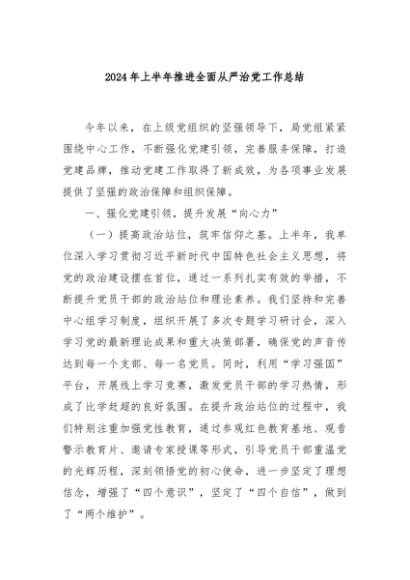 / 【七哥公文】2024年:2024年上半年推进全面从严治党工作总结+更多免费公文+VX:QiGeGongWen2024