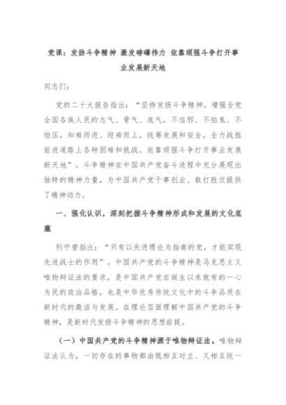 【七哥公文】2024年:党课:发扬斗争精神 激发磅礴伟力 依靠顽强斗争打开事业发展新天地+更多免费公文+VX:QiGeGongWen2024