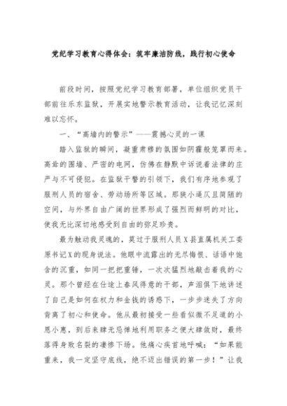 / 【七哥公文】2024年:党纪学习教育心得体会:筑牢廉洁防线,践行初心使命+更多免费公文+VX:QiGeGongWen2024