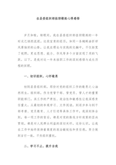 / 【七哥公文】2024年:在县委组织部挂职锻炼心得感悟+更多免费公文+VX:QiGeGongWen2024