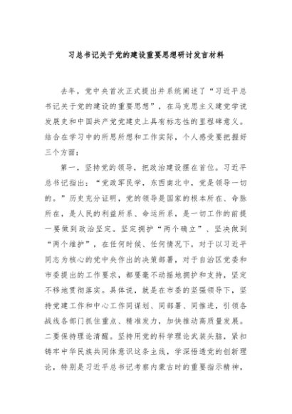 【七哥公文】2024年:习总书记关于党的建设重要思想研讨发言材料+更多免费公文+VX:QiGeGongWen2024