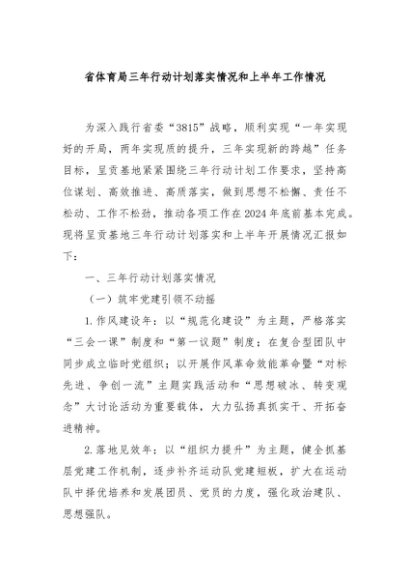 / 【七哥公文】2024年:省体育局三年行动计划落实情况和上半年工作情况+更多免费公文+VX:QiGeGongWen2024