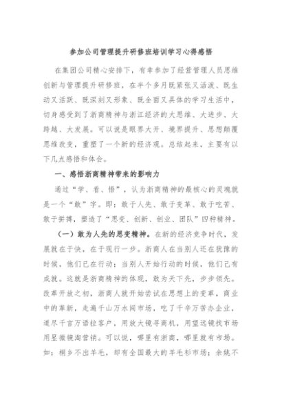 / 【七哥公文】2024年:参加公司管理提升研修班培训学习心得感悟+更多免费公文+VX:QiGeGongWen2024