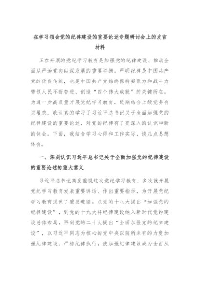 【七哥公文】2024年:在学习领会党的纪律建设的重要论述专题研讨会上的发言材料+更多免费公文+VX:QiGeGongWen2024