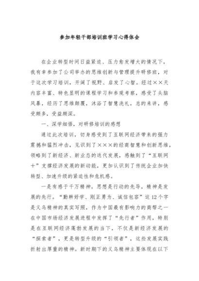 / 【七哥公文】2024年:参加年轻干部培训班学习心得体会+更多免费公文+VX:QiGeGongWen2024