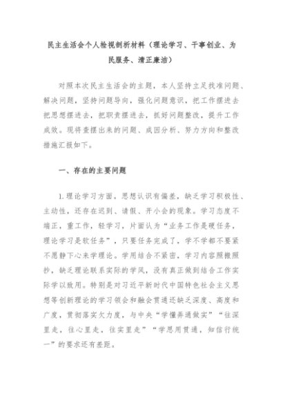 【七哥公文】2024年:民主生活会个人检视剖析材料(理论学习、干事创业、为民服务、清正廉洁)+更多免费公文+VX:QiGeGongWen2024