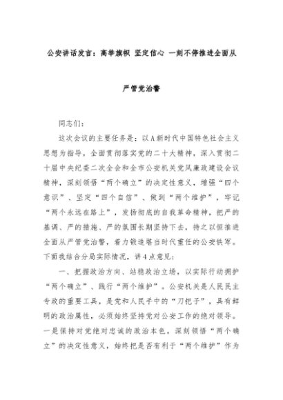 【七哥公文】2024年:公安讲话发言:高举旗帜 坚定信心 一刻不停推进全面从严管党治警+更多免费公文+VX:QiGeGongWen2024