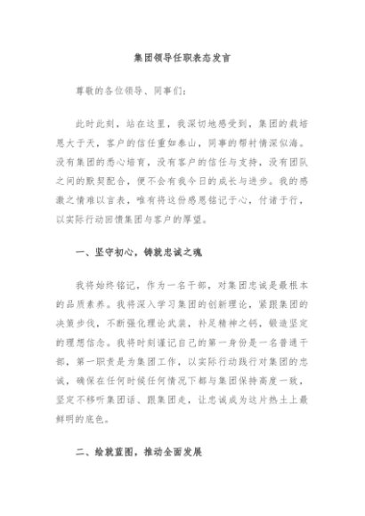 【七哥公文】2024年:集团领导任职表态发言+更多免费公文+VX:QiGeGongWen2024