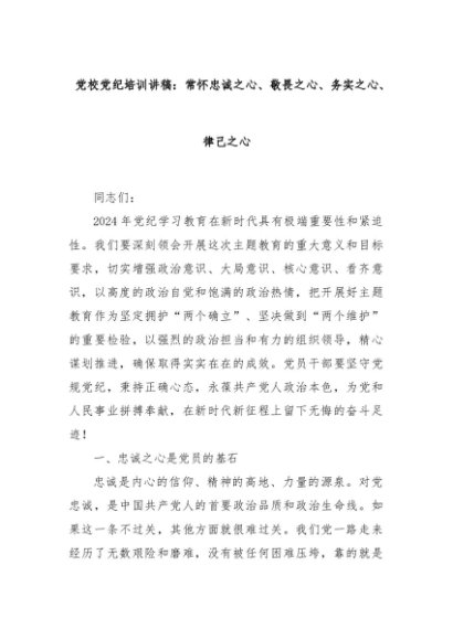 【七哥公文】2024年:党校党纪培训讲稿:常怀忠诚之心、敬畏之心、务实之心、律己之心+更多免费公文+VX:QiGeGongWen2024
