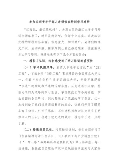 / 【七哥公文】2024年:参加公司青年干部人才研修班培训学习感悟+更多免费公文+VX:QiGeGongWen2024
