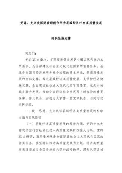 【七哥公文】2024年:党课:充分发挥财政职能作用为县域经济社会高质量发展提供坚强支撑+更多免费公文+VX:QiGeGongWen2024