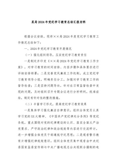 / 【七哥公文】2024年:某局2024年党纪学习教育总结汇报材料+更多免费公文+VX:QiGeGongWen2024