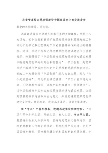 / 【七哥公文】2024年:在省管高校大思政课建设专题座谈会上的交流发言+更多免费公文+VX:QiGeGongWen2024