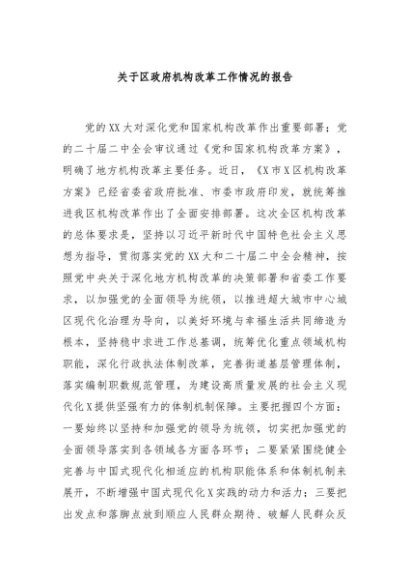 / 【七哥公文】2024年:关于区政府机构改革工作情况的报告+更多免费公文+VX:QiGeGongWen2024