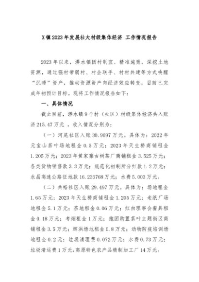 / 【七哥公文】2024年:X镇2023年发展壮大村级集体经济 工作情况报告+更多免费公文+VX:QiGeGongWen2024