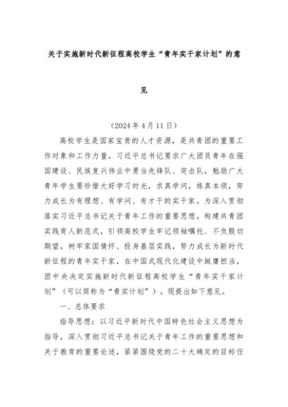 【七哥公文】2024年:关于实施新时代新征程高校学生“青年实干家计划”的意见+更多免费公文+VX:QiGeGongWen2024
